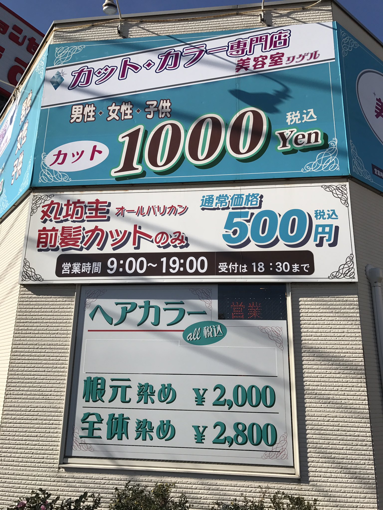 たけろん 東久留米の1000円カット美容室 丸刈りは500円だからよく利用してるわ 正式名称は美容室 リゲルなのかカットハウス美容室東久留米店なのか しまむらのとなり マルフジの向かい